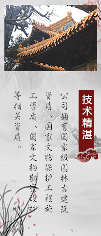 堅持質量為先,信譽為重,管理為本,服務為誠的理念。本著對社會、對建設單位負責的原則,將工程質量、安全生產放在工作的重要位置。我們堅持發(fā)展古建藝術,弘揚民族文化,作為企業(yè)的經營管理理念。曲阜古建筑義德古建始終秉承“科學管理,創(chuàng)精品工程,打造古建筑行業(yè)標準”的方針,追求更高質量,為文物保護、傳統(tǒng)建筑事業(yè)做出貢獻。